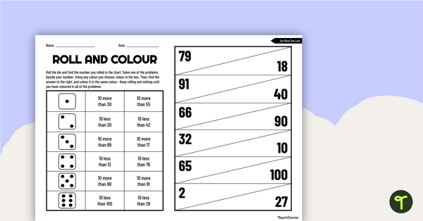 The 10 More or Less Worksheet is designed to help students practice adding and subtracting numbers within 10. The worksheet features a series of problems where students are asked to either add 10 to a given number or subtract 10 from a given number. This exercise helps students understand the relationship between numbers and how to manipulate them to find the correct answer.