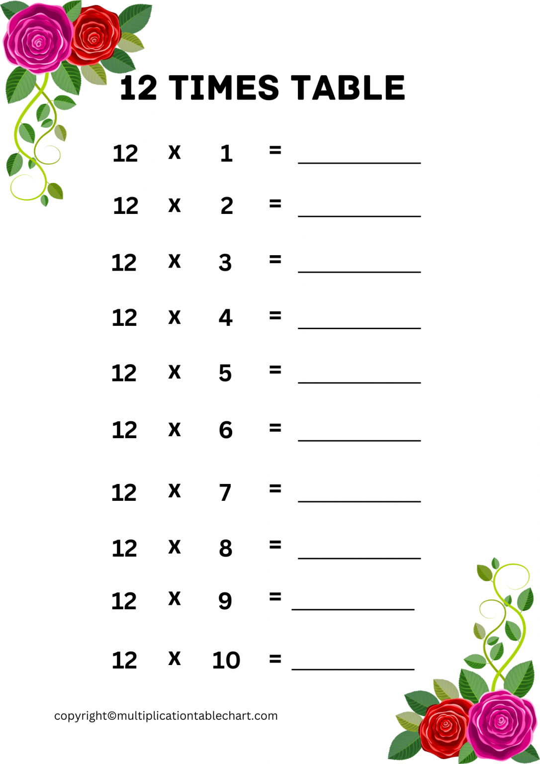 12 Multiplication Table Worksheet