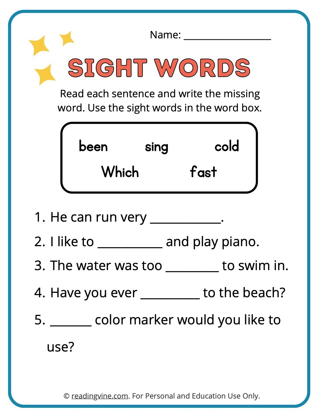 These worksheets are not only beneficial for improving reading skills, but they also help enhance vocabulary and comprehension. By mastering these sight words, students can build a strong foundation for reading more complex texts and developing overall literacy skills.