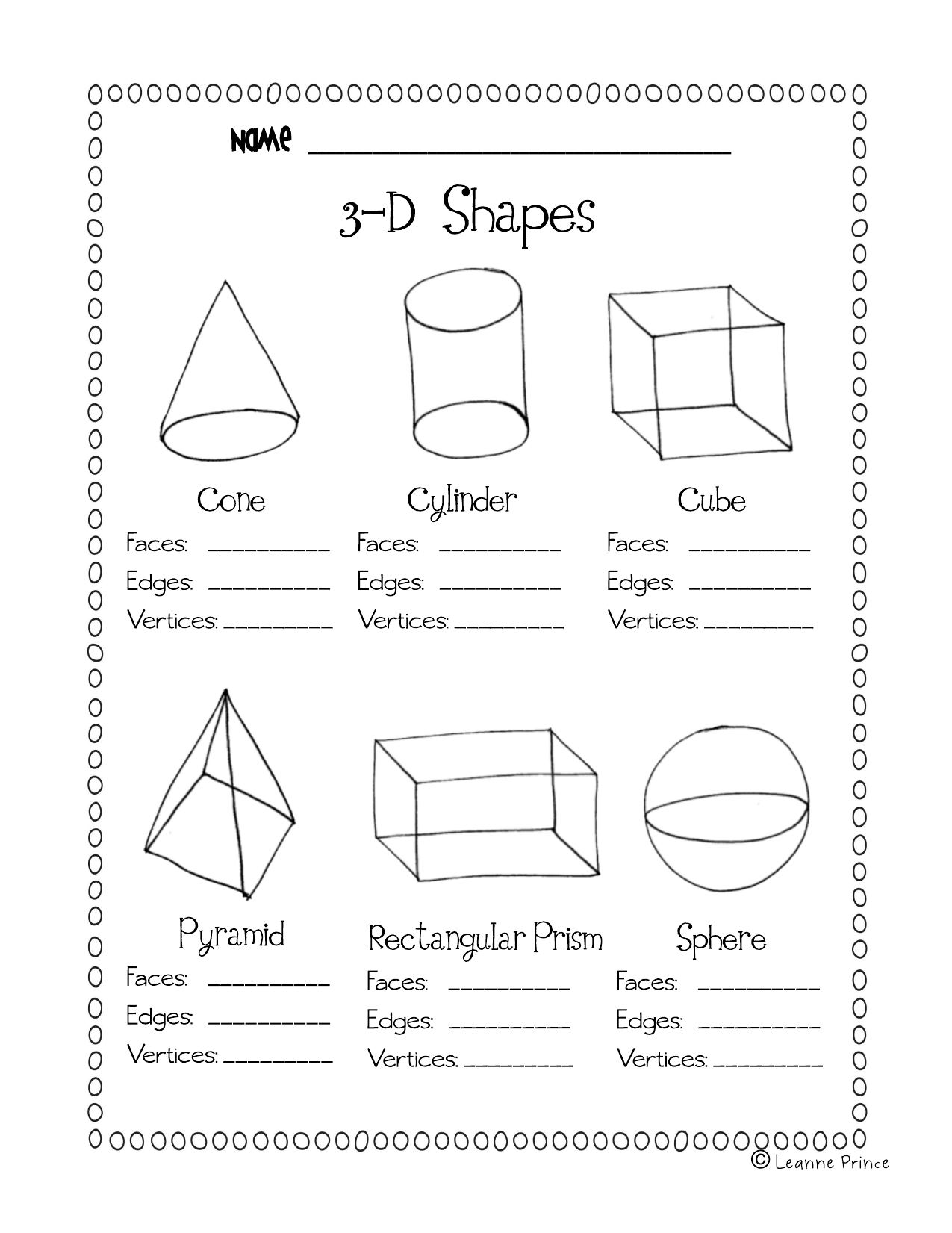 Download and Print 3d shapes faces edges vertices worksheets with answers Listed below