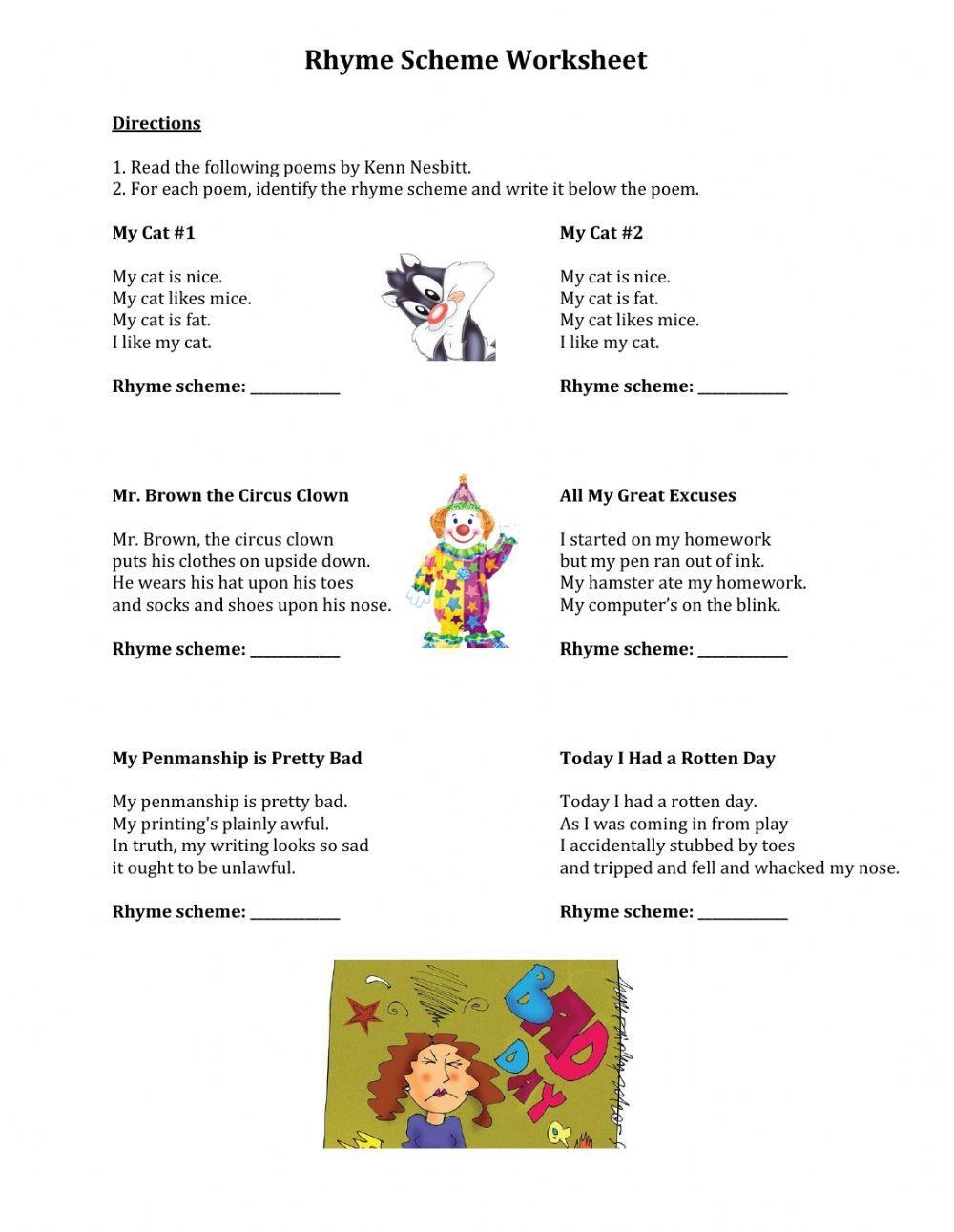 In conclusion, 5th grade rhyme scheme worksheets are a valuable tool for helping students learn about and practice rhyme scheme in poetry. By engaging in activities that require them to identify, create, and analyze rhyme schemes, students can develop a deeper appreciation for the art of poetry and improve their own writing skills. These worksheets can be a fun and interactive way for students to explore the world of poetry and express themselves creatively through words.