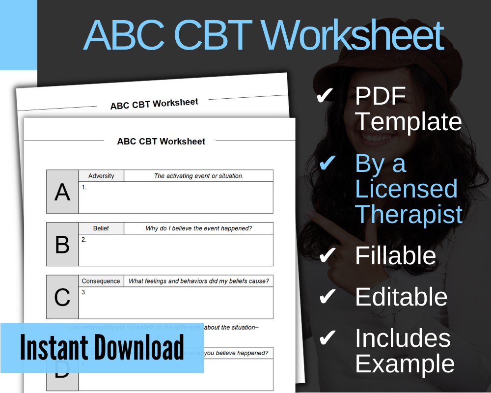 ABC CBT Worksheet Fillable PDF Therapists Market