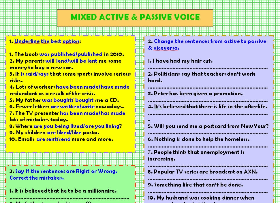 Another type of activity in these worksheets may involve identifying the verb in a sentence and determining whether it is in active or passive voice. This can help you develop the ability to recognize and differentiate between the two forms, enabling you to use them correctly in your own writing.