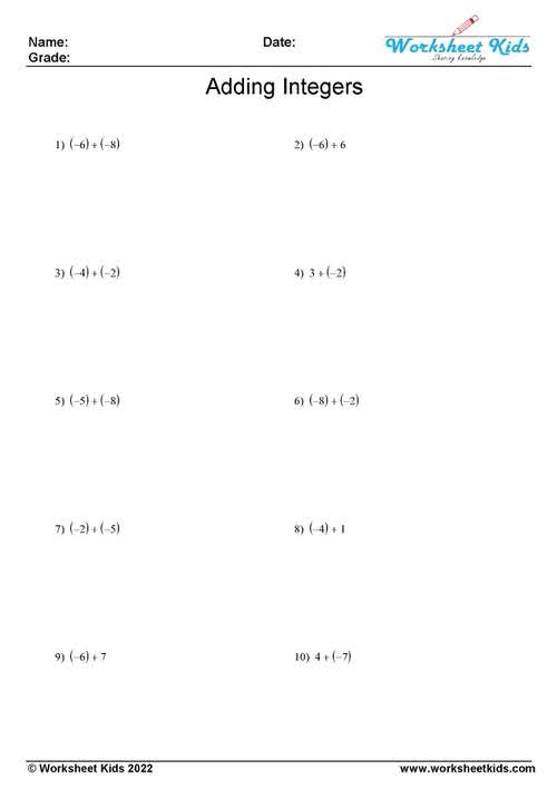 In conclusion, add integers worksheets are a valuable resource for students to practice and master the skill of adding integers. By working on these worksheets, students can build confidence in their math abilities, improve their problem-solving skills, and deepen their understanding of integer addition. These worksheets provide a structured and engaging way for students to practice adding integers and receive immediate feedback on their progress. With regular practice and perseverance, students can become proficient in adding integers and excel in their math studies.