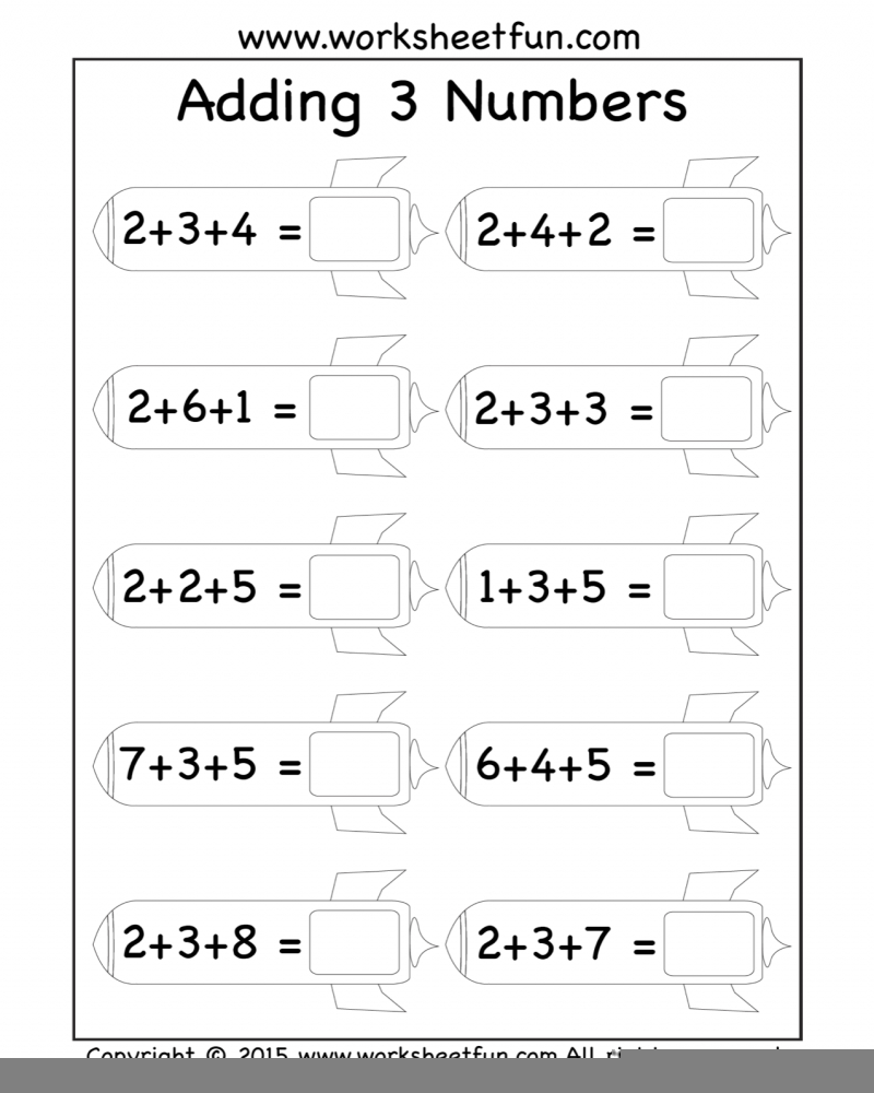 3 Number Addition Worksheets Math Worksheets Printable