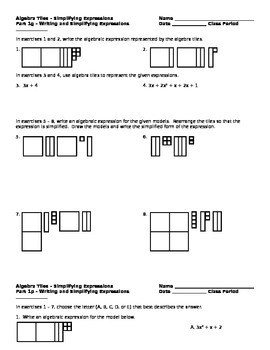 Algebra Tiles Worksheets