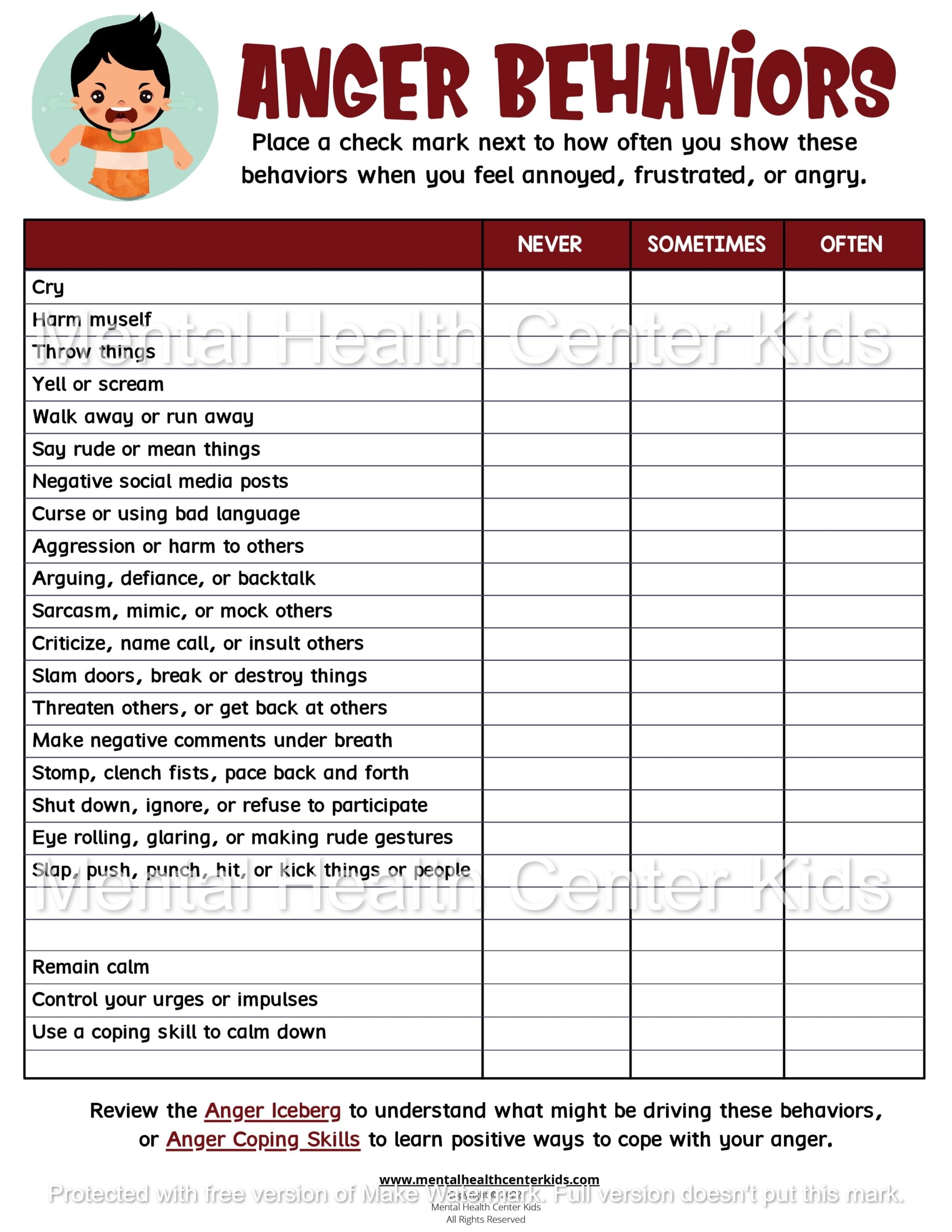 Anger is a natural emotion that everyone experiences at some point in their lives. However, managing anger in a healthy way is crucial for our overall well-being and relationships. Anger worksheets are effective tools that can help individuals identify and understand their anger triggers, as well as develop coping strategies to deal with intense emotions.