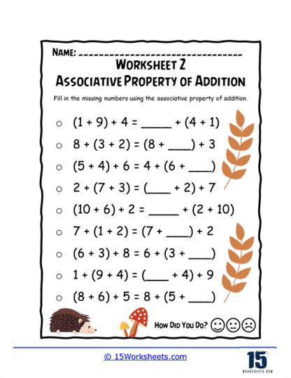 Associative Property of Addition Worksheets