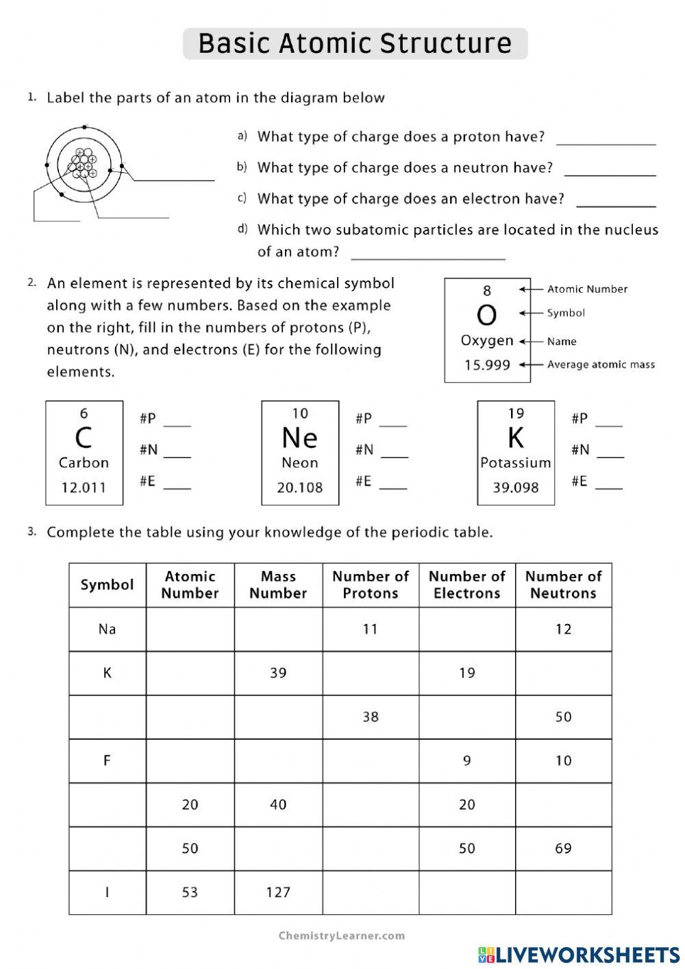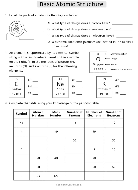 Understanding atomic structure is fundamental in the field of chemistry. One way to reinforce this knowledge is through worksheets that challenge students to apply their understanding of atoms, protons, neutrons, and electrons. These worksheets often come with answer sheets that provide students with immediate feedback on their understanding of the topic.