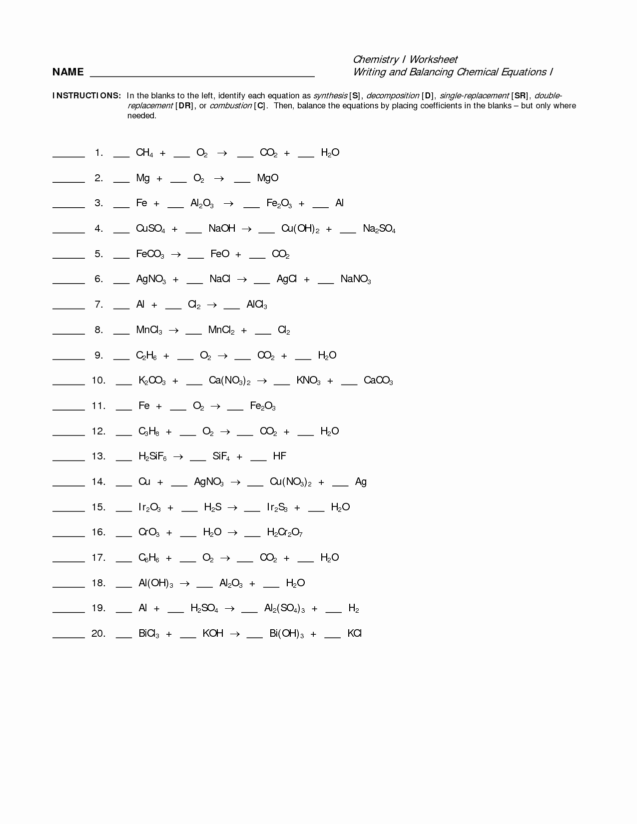 Chemistry Balancing Chemical Equations Worksheet Worksheets Library