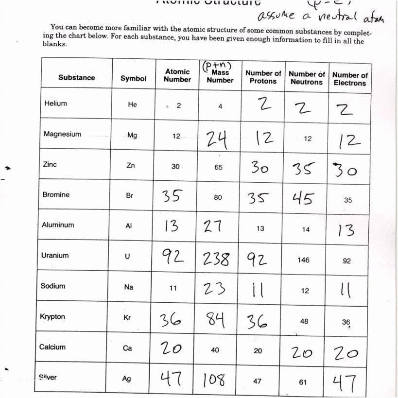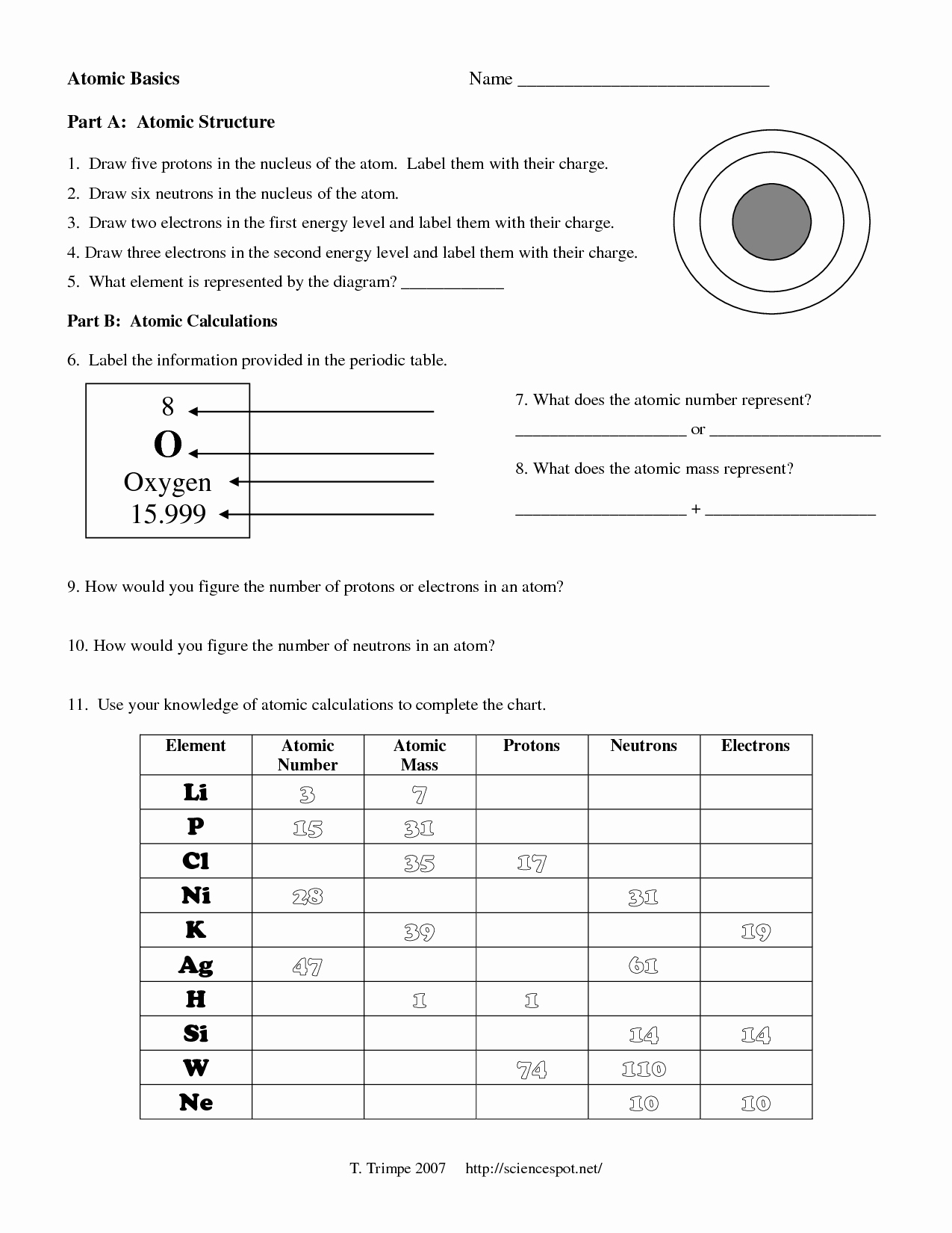 Basic Atomic Worksheet