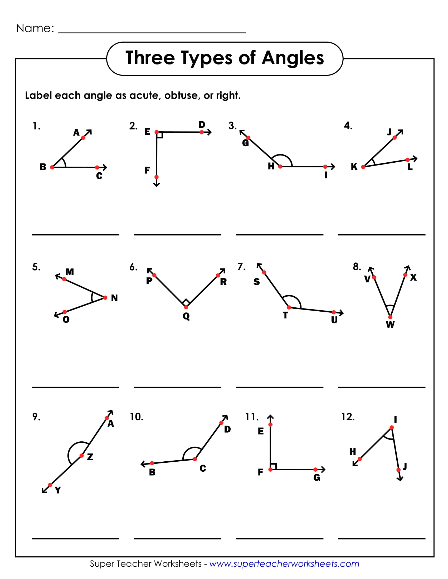 Basic Geometry Angles Worksheet