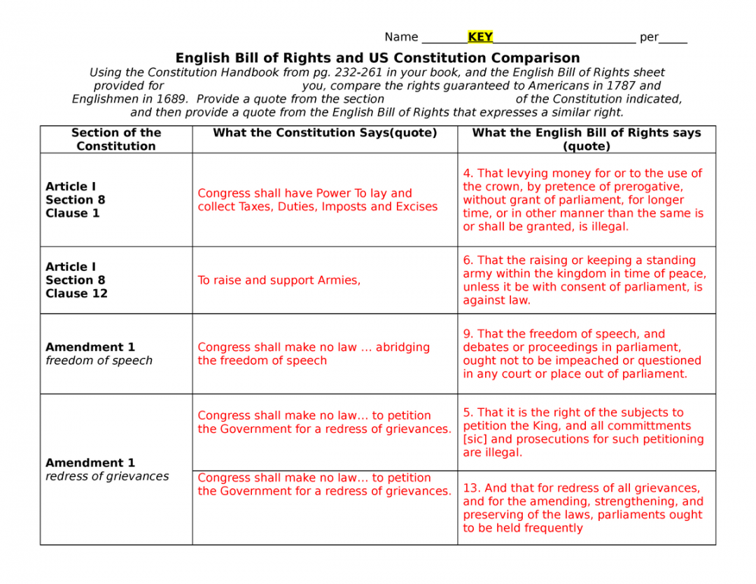 Download and Print bill of rights worksheet answer key Listed below