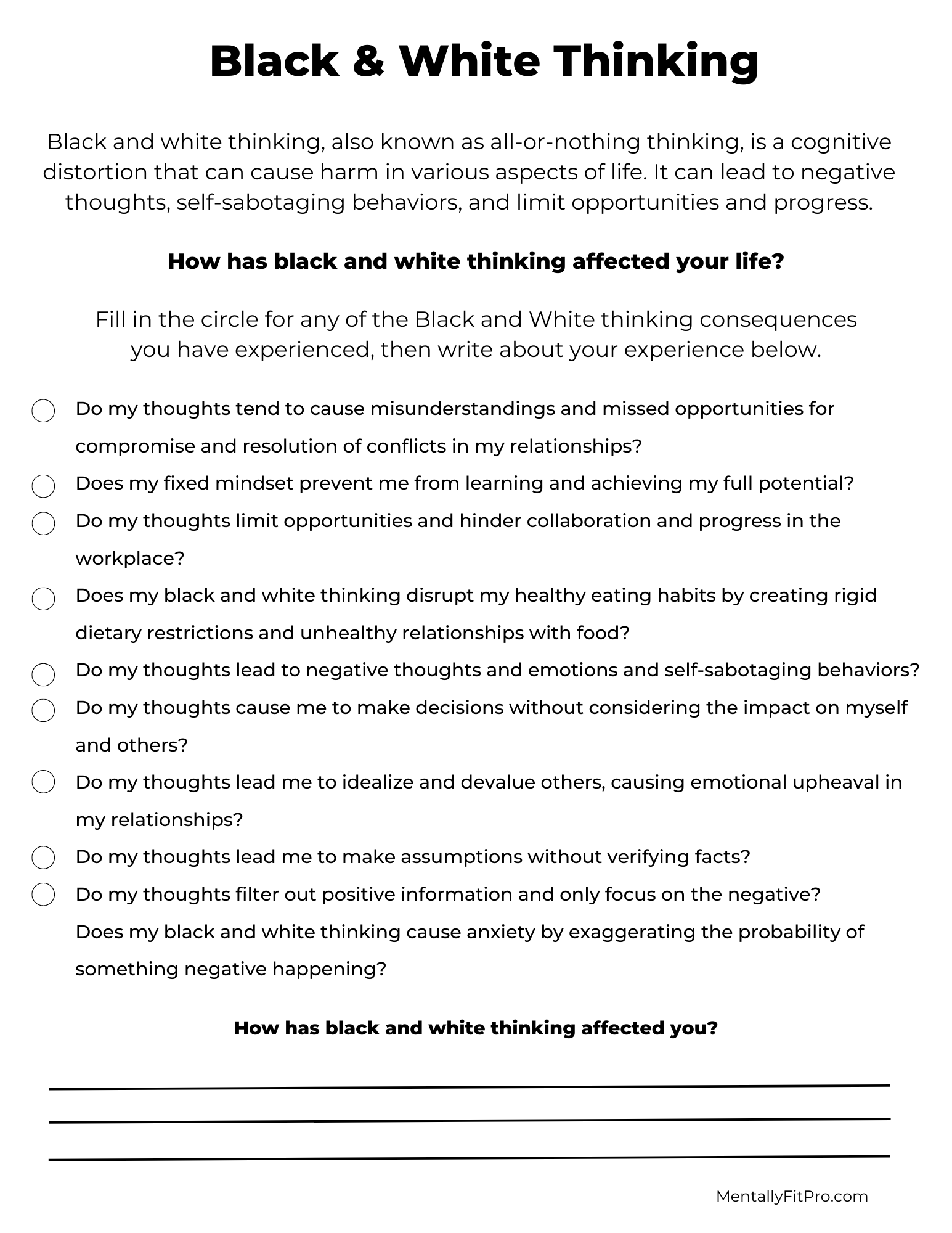 Download and Print black and white thinking worksheet Listed below