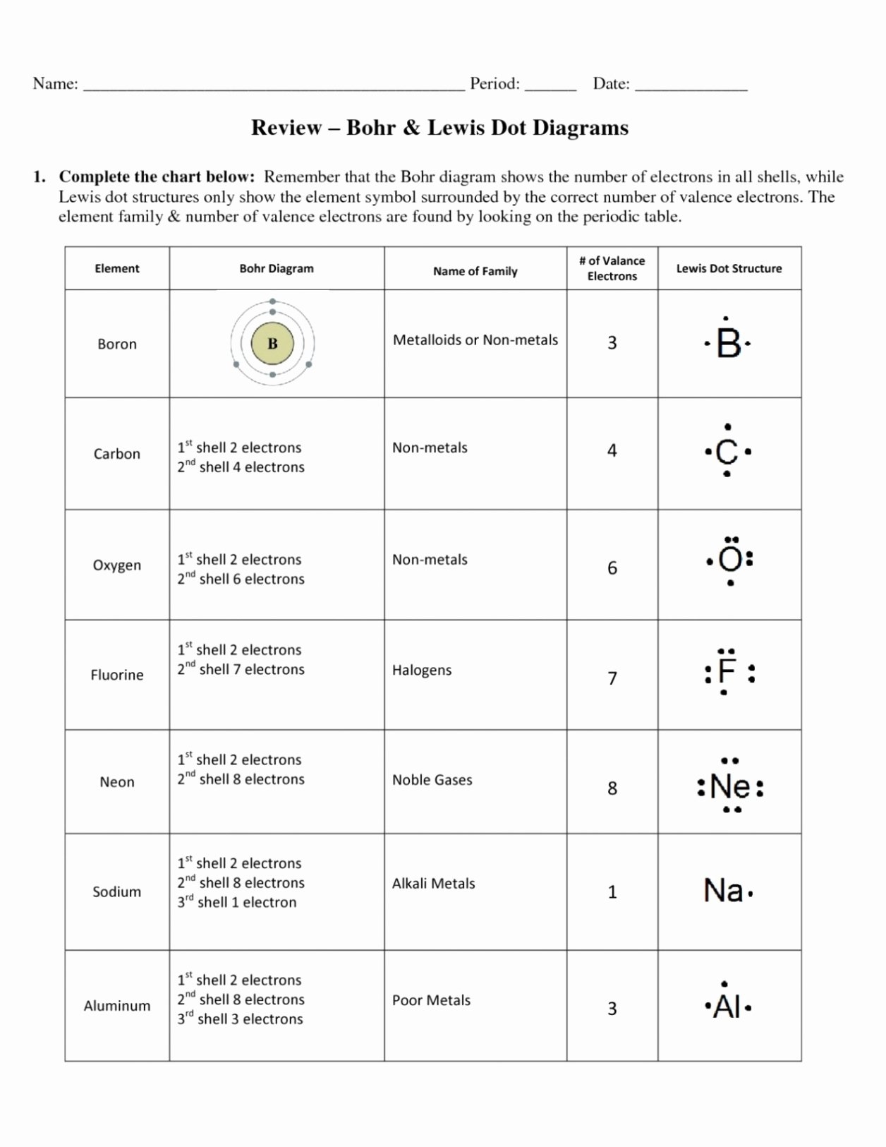 Bohr Diagram and Lewis Dot Worksheet Answer Key