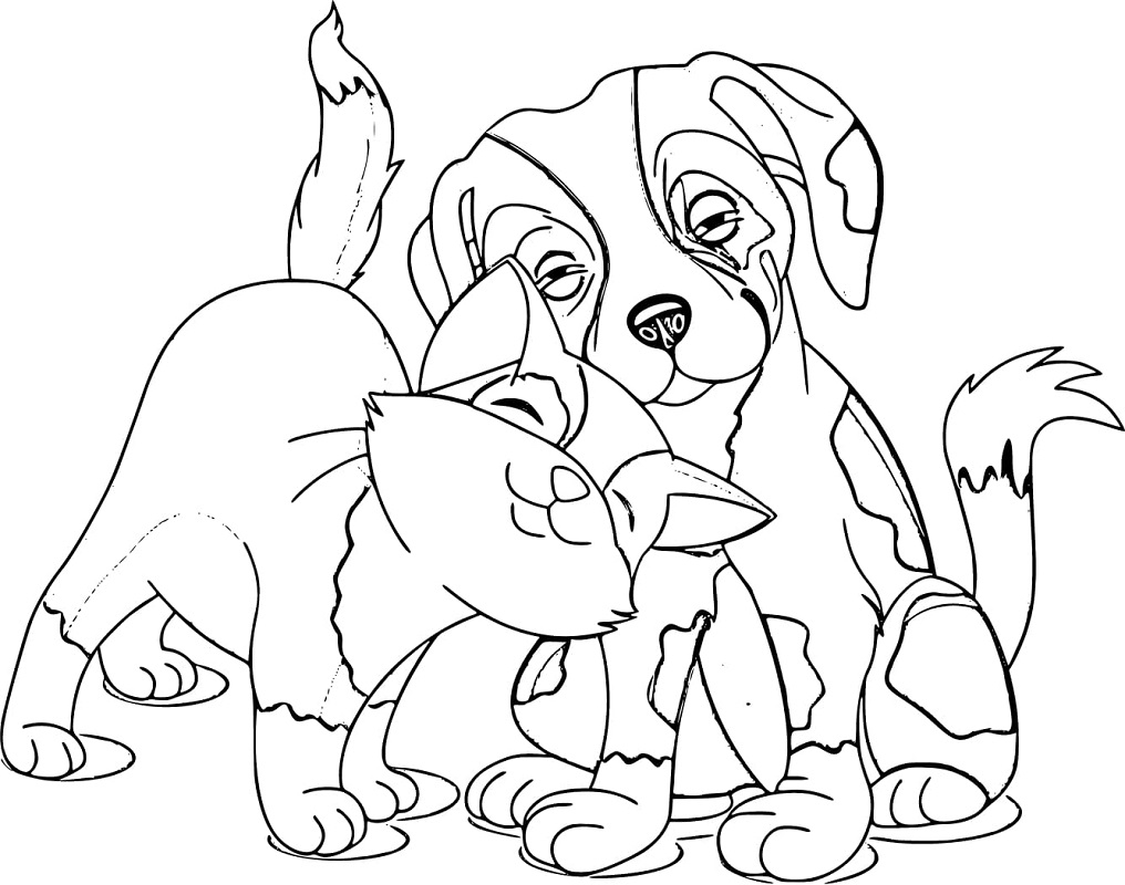 Friendly Dog And Cat Coloring Page Free Printable Coloring Pages For Kids