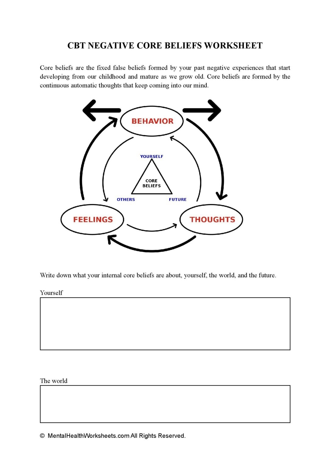 Core Beliefs Cbt Worksheet Printable Worksheets