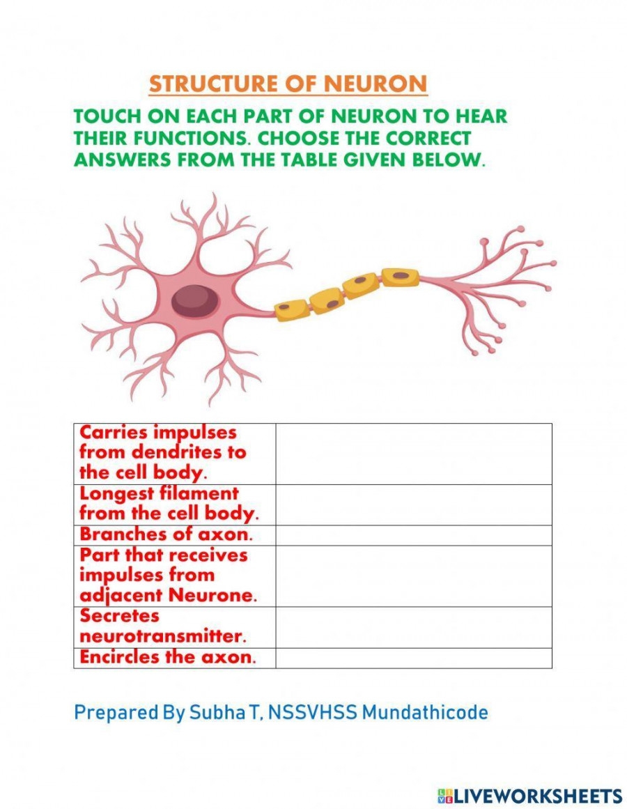 Neuron Structure And Function Worksheet Printable PDF Template