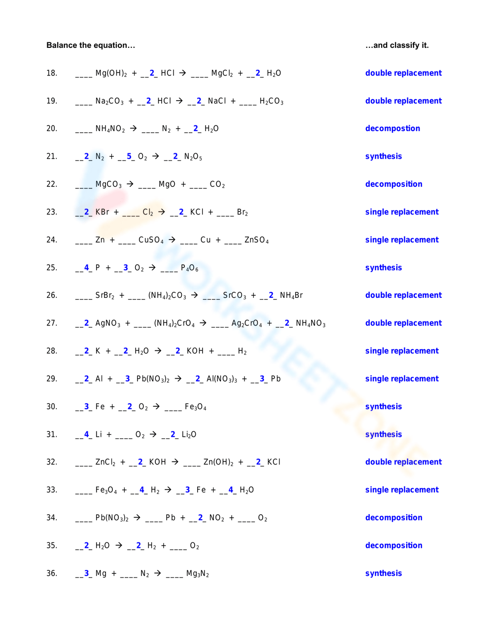 Overall, chemistry balancing equations worksheets are a valuable resource for students to practice and master this important skill. By working through various equations and checking their answers, students can build confidence in their abilities and become more proficient in balancing chemical equations.