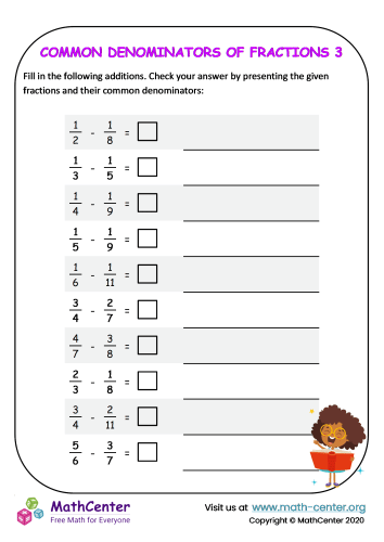 Common denominator fractions worksheet is a helpful tool for students to practice adding and subtracting fractions with different denominators. These worksheets typically include a series of fractions with varying denominators, and students are required to find the common denominator before performing the operation.