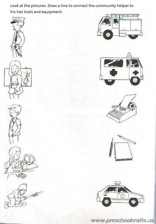 One popular community helpers worksheet for preschoolers is a matching activity where children match pictures of community helpers to their respective tools or vehicles. This activity not only helps children recognize different community helpers, but also reinforces the tools and vehicles associated with each profession.