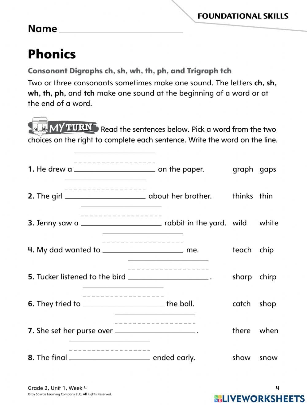 2. Fill in the Blanks: Students are provided with sentences that contain missing consonant digraphs. They must fill in the blanks with the correct digraph to complete each sentence. This activity helps students practice using digraphs in context.