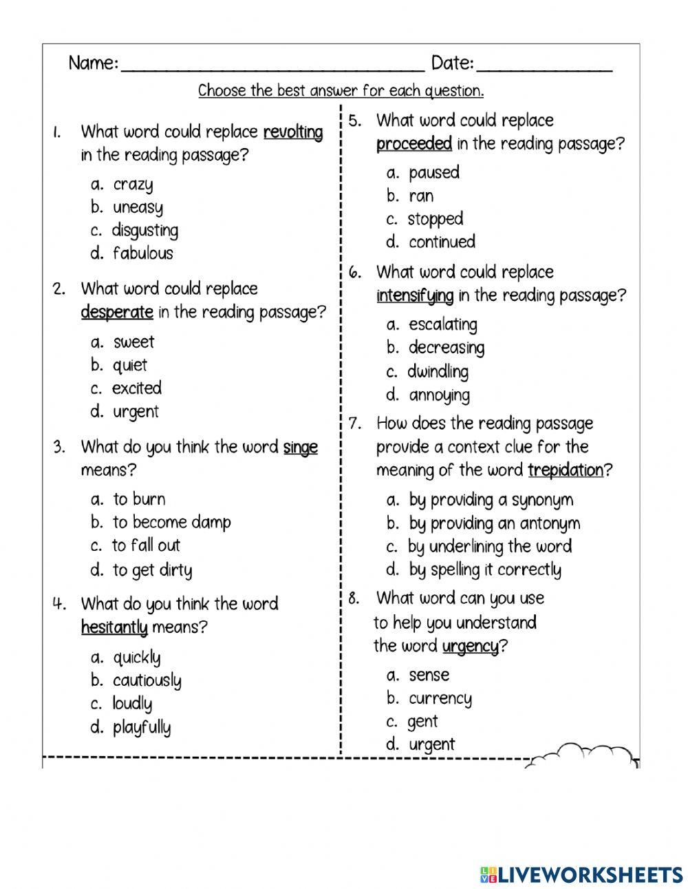 In addition to identifying context clue types, students may also be asked to define the meaning of a word based on the context in which it is used. This requires students to analyze the surrounding text and make educated guesses about the word’s definition.