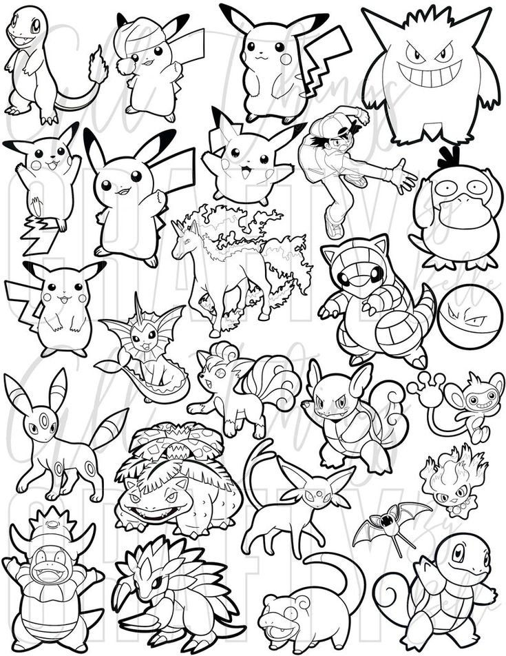 One popular choice for coloring pages is Pikachu, the franchise’s mascot and one of the most recognizable Pokemon. Pikachu’s yellow fur and adorable face make for a fun and engaging coloring experience. Other fan-favorites like Eevee, Jigglypuff, and Snorlax also make for great coloring subjects, each with their own unique charm.