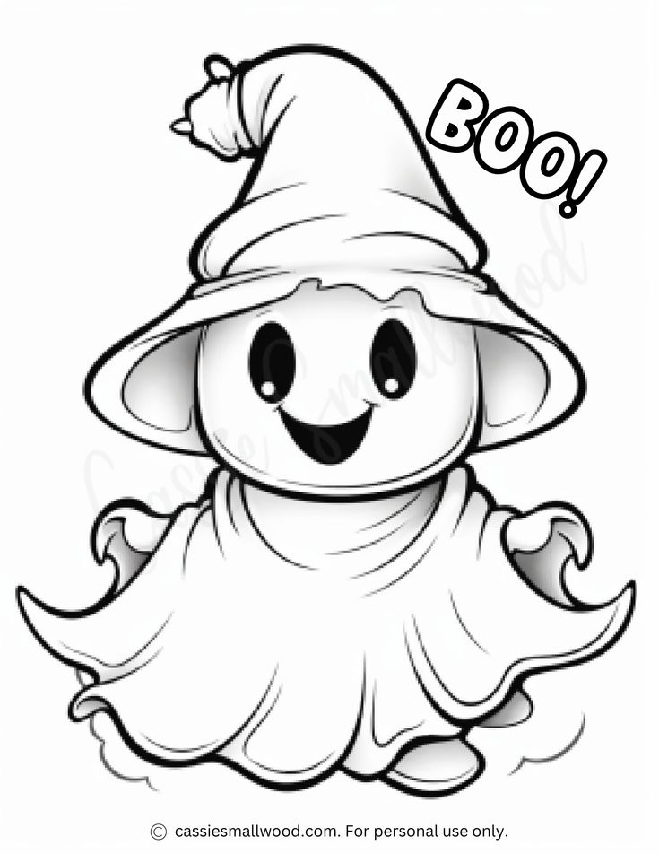 1. Friendly Ghost: This smiling ghost is perfect for younger children who might be scared of traditional spooky ghosts. With its big eyes and happy expression, this ghost is sure to bring joy to anyone who colors it in.