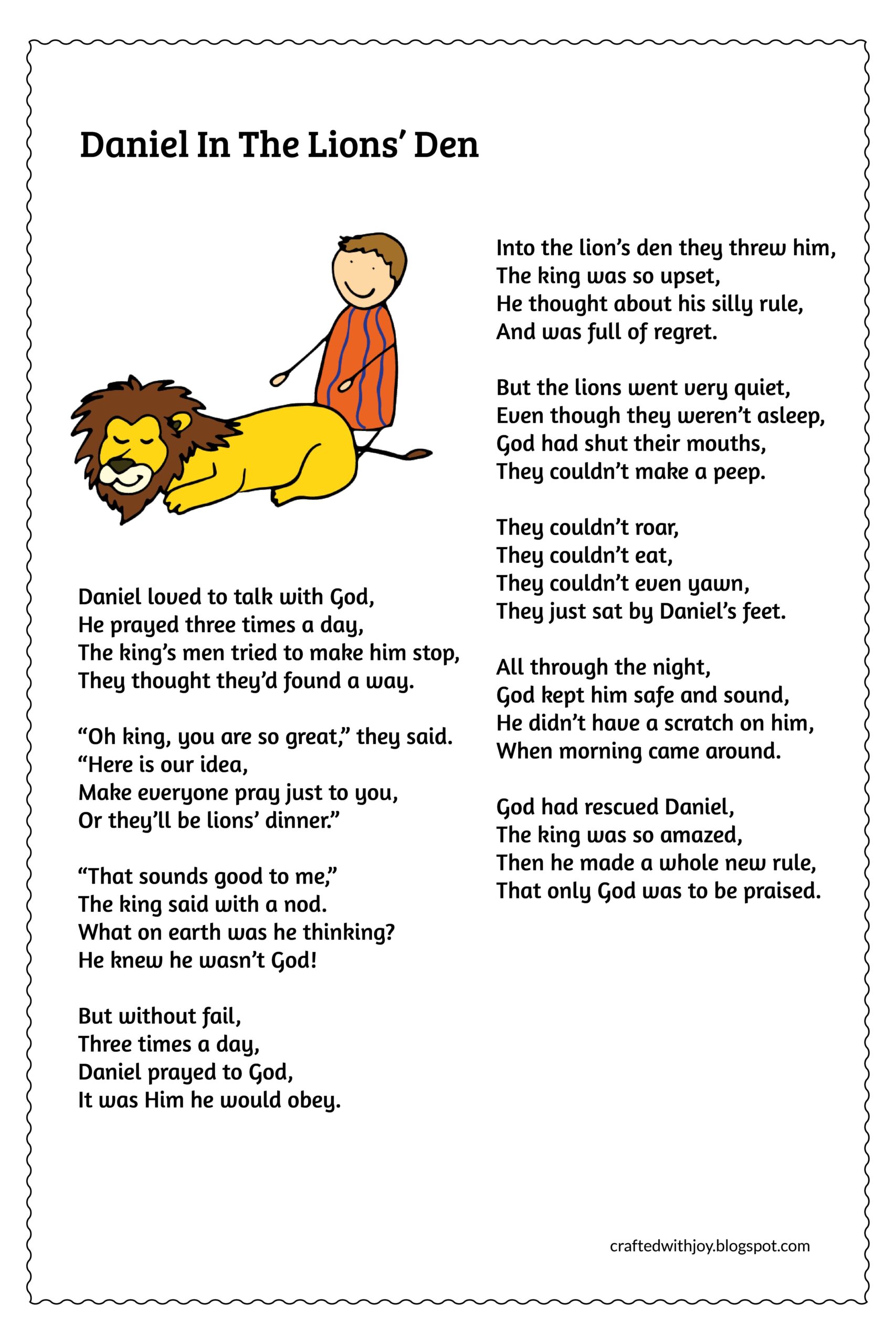 Daniel In The Lions 39 Den Poem Daniel In The Lion 39 s Den Daniel And