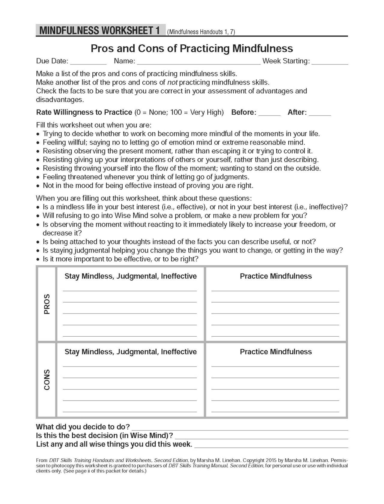Dbt Mindfulness Worksheets