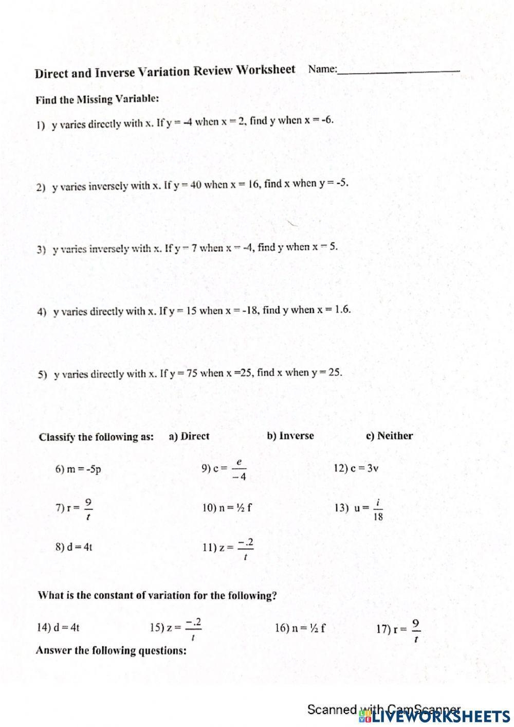 Direct And Inverse Variation Worksheet May 23, 2025June 20, 2023 by admin Download and Print direct and inverse variation worksheet Listed below