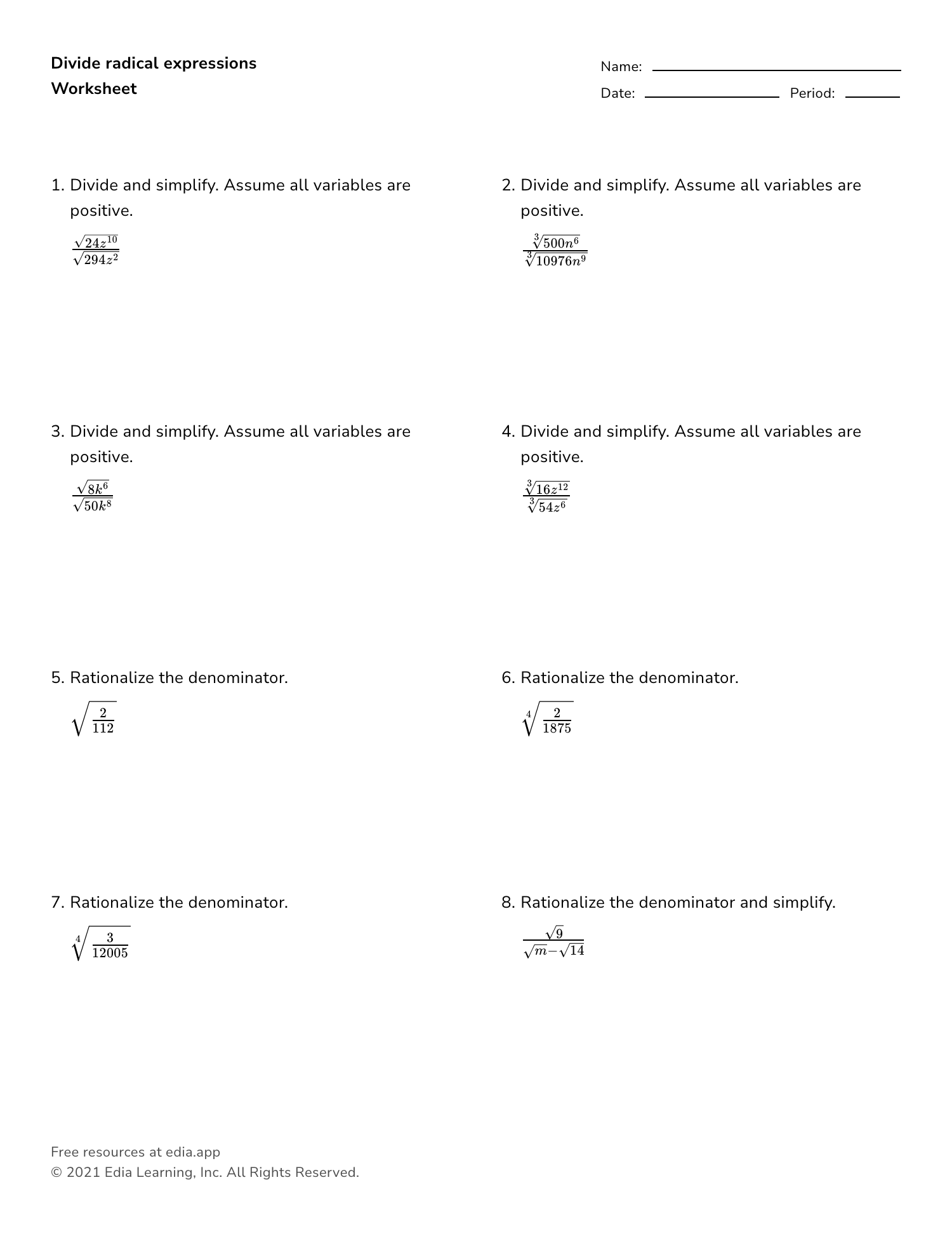 Dividing Radicals Worksheet May 23, 2025June 25, 2023 by admin Download and Print dividing radicals worksheet Listed below