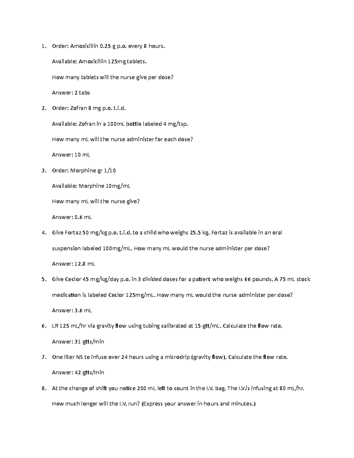 SOLUTION Answer Sheet Week 2 Dosage Calculations Series E 3