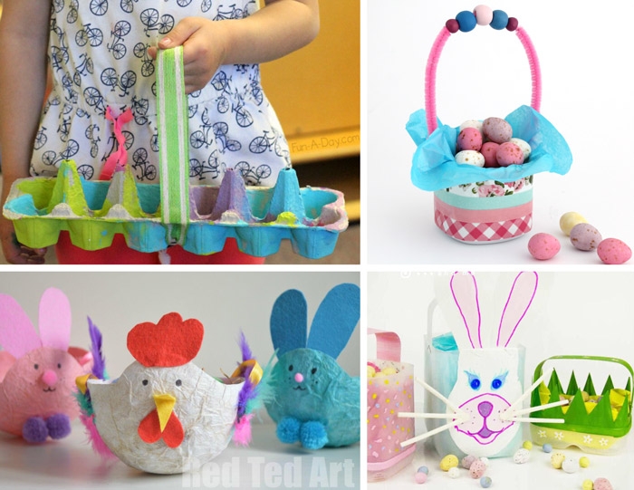 2. Egg Carton Baskets: Upcycle your empty egg cartons by turning them into mini Easter baskets. Cut the egg carton into individual cups, paint them in pastel colors, and decorate them with glitter, stickers, or ribbons. You can even add a small handle by attaching pipe cleaners to the sides. These baskets are perfect for holding small candies or trinkets.