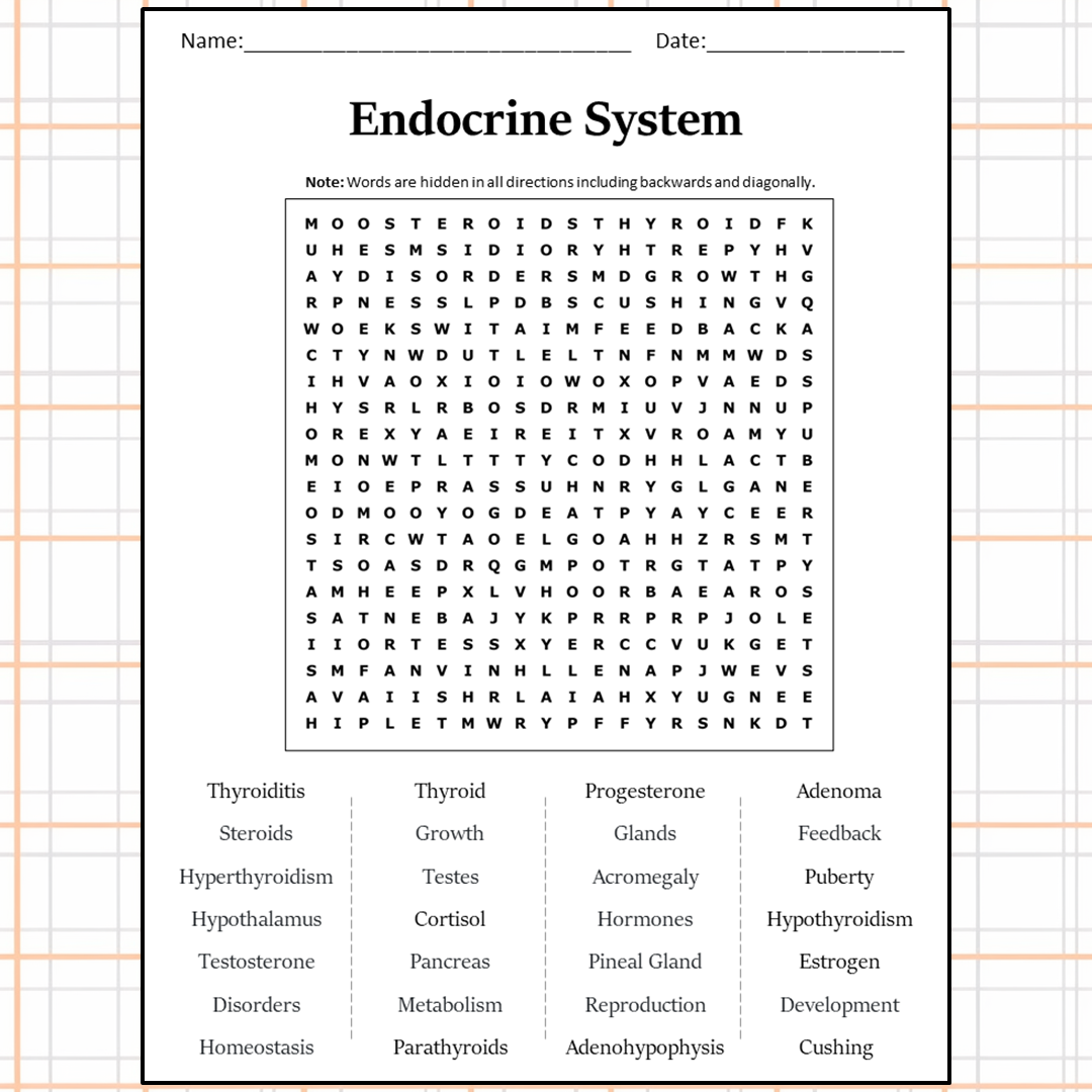 Endocrine System Word Search Puzzle Worksheet Activity PDF