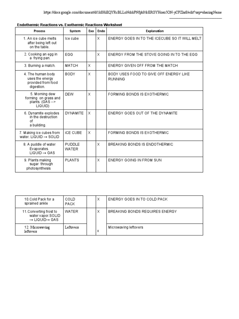 Download and Print endothermic and exothermic reactions worksheet Listed below