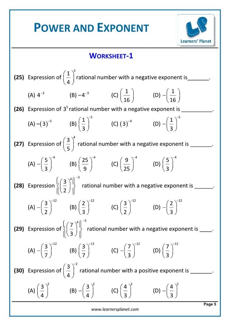Worksheets For Class 7 Exponents And Powers Chapter 13