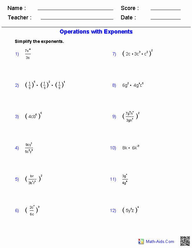 Exponential Expressions Multiplying And Dividing Worksheet Fun