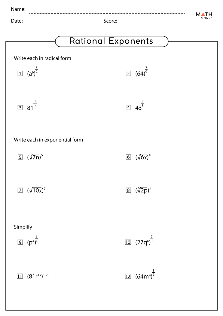 Rational Exponents Worksheets Math Monks Worksheets Library
