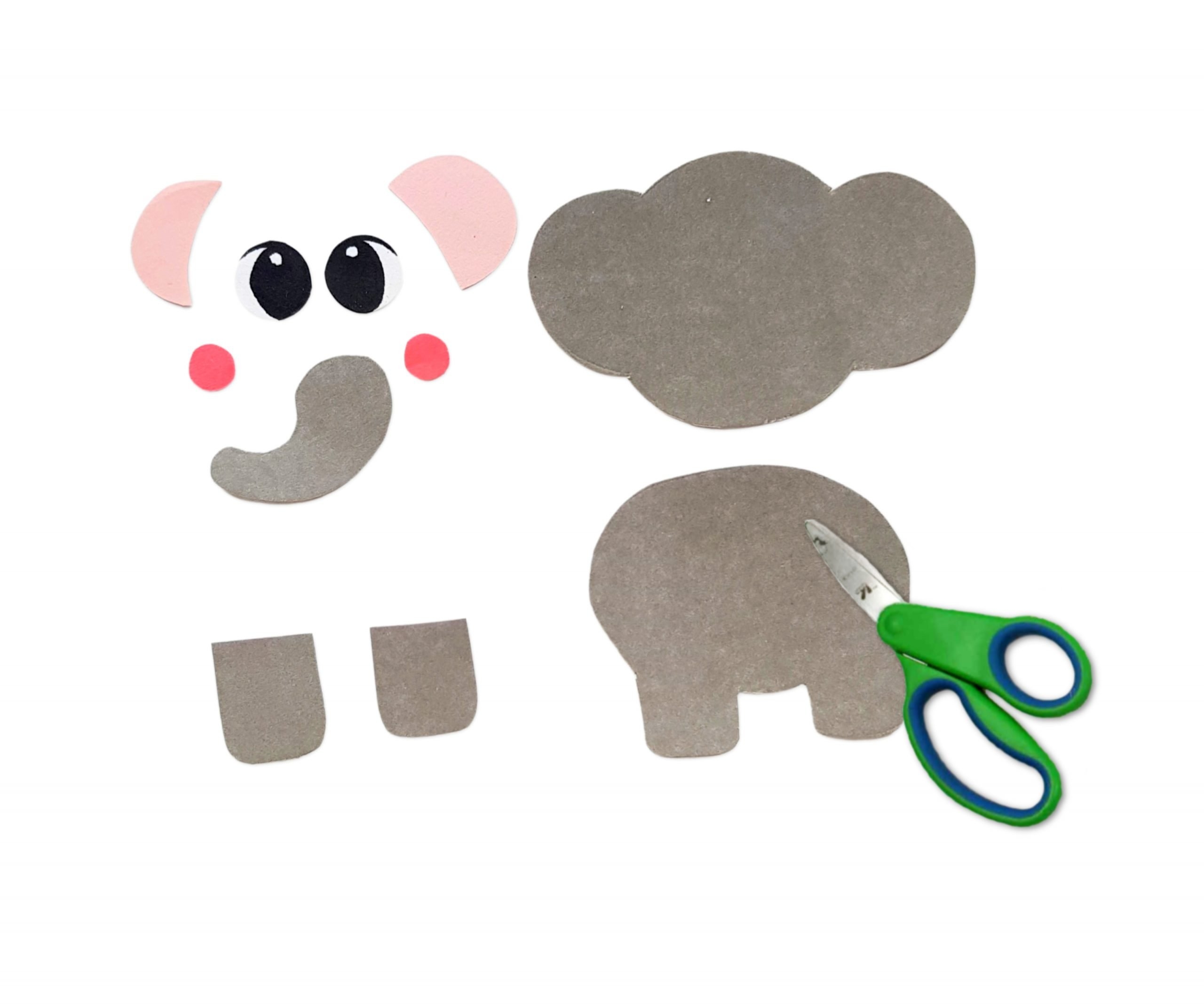 Start by printing out the free printable elephant template. You can choose to print it on gray paper for a more realistic look, or let your kids get creative with different colors. Once you have the template printed, carefully cut out all the pieces.