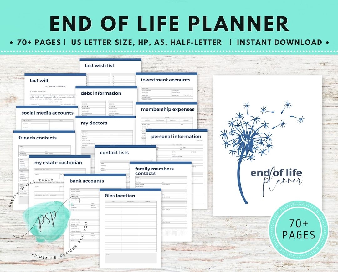 End Of Life Planner Printable Final Preparations Emergency Etsy