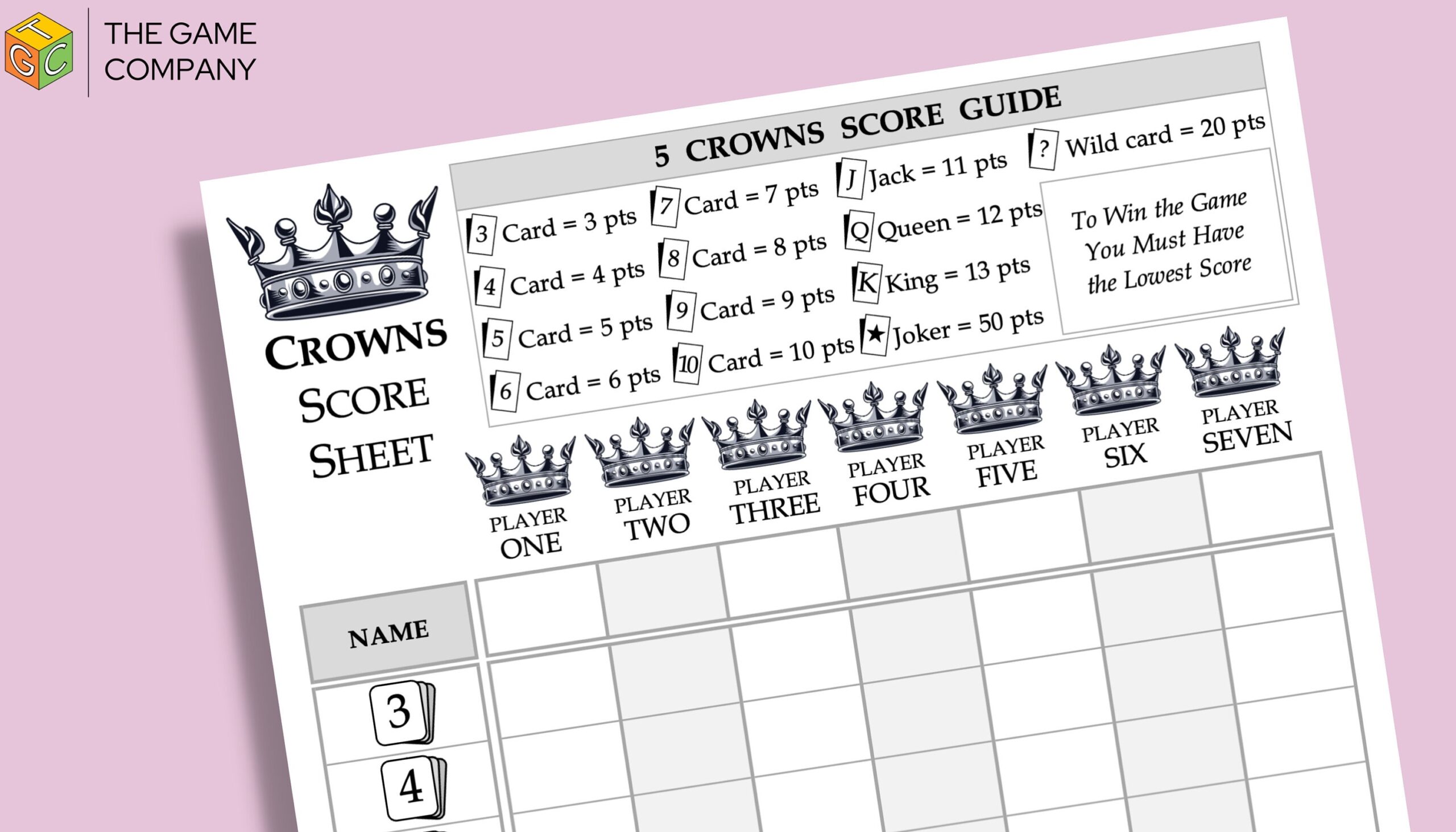 Crowns Score Sheet Printable Crowns Score Card A4 Size 45 OFF