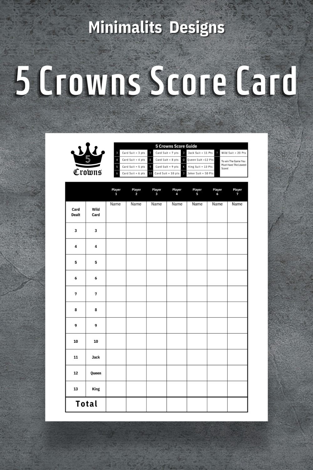 Five Crowns Score Sheet Five Crowns Score Card Etsy Card Games