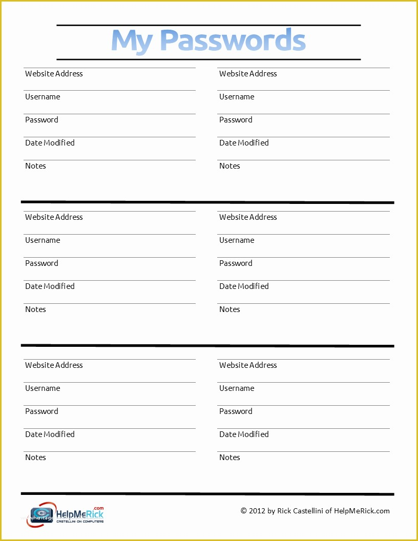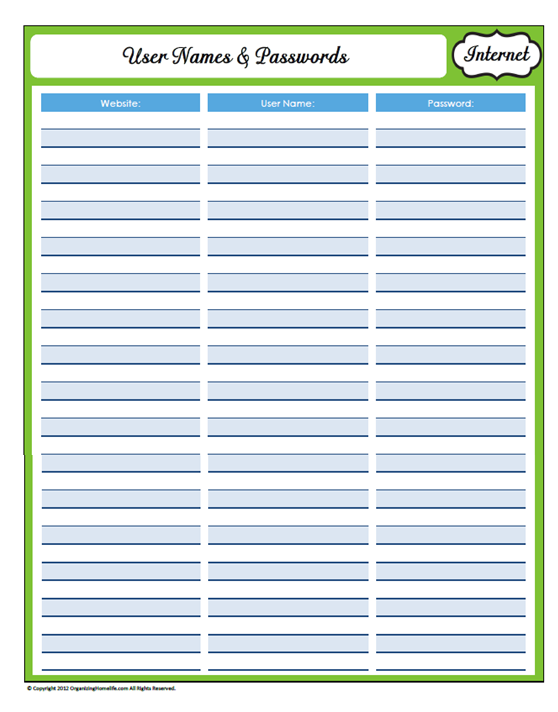 Free Printable Username Password Template