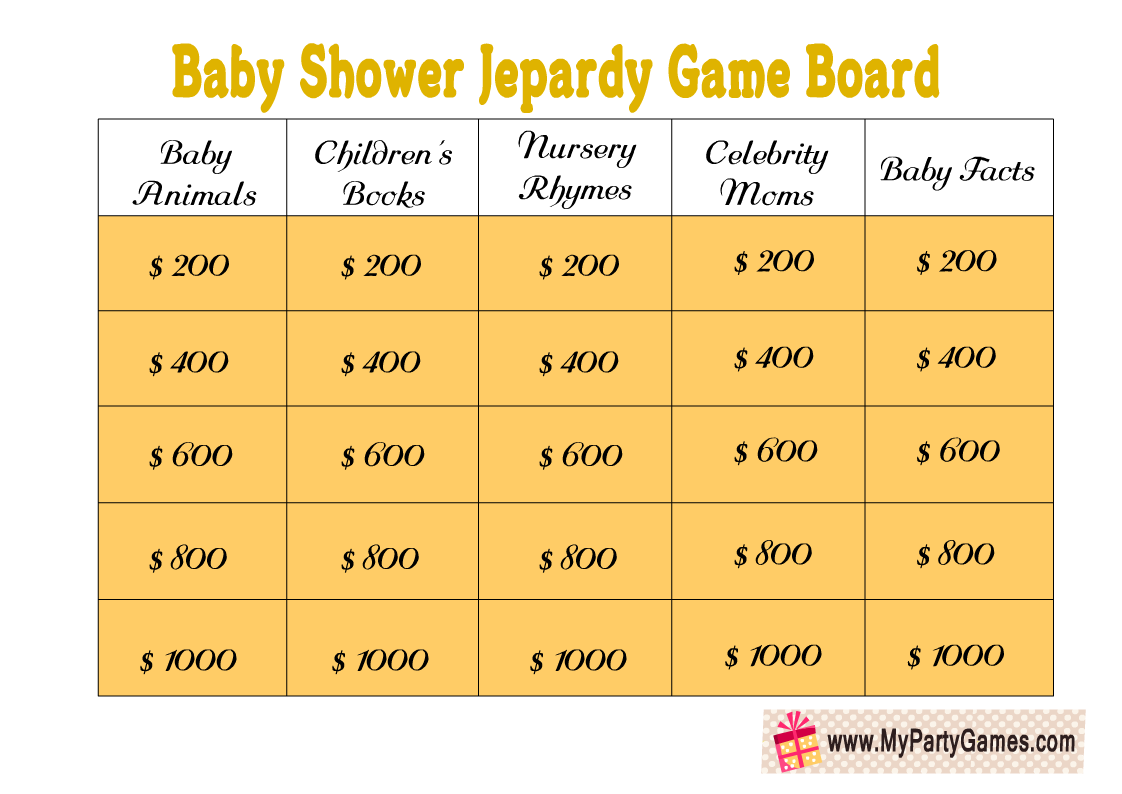 Free Printable Baby Shower Jeopardy Game 46 OFF