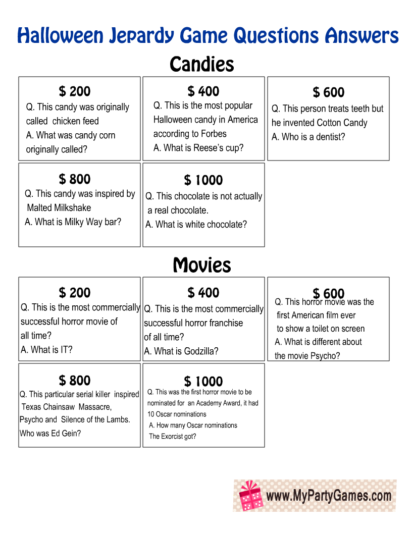 Free Printable Halloween Jeopardy Game Board And Question Cards