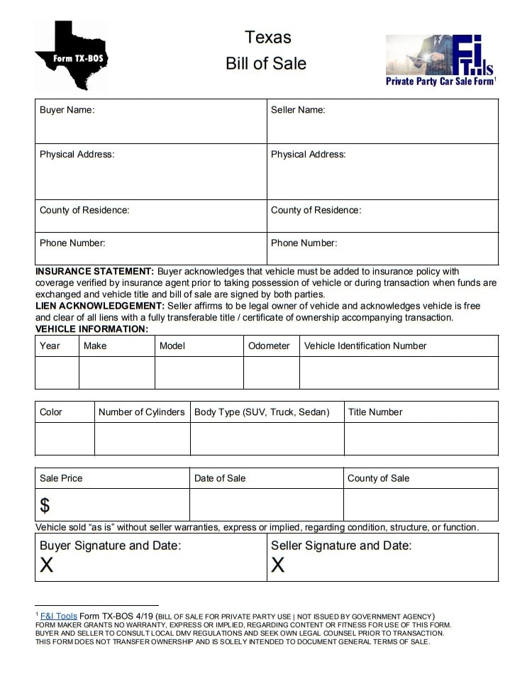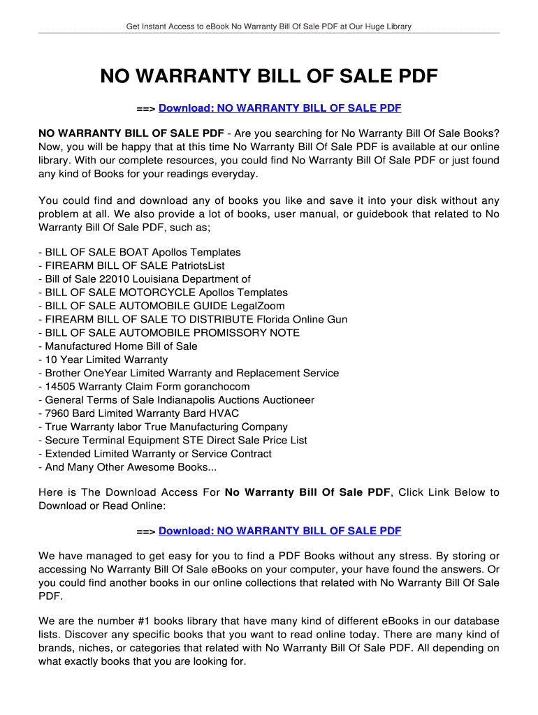 No Warranty Bill of Sale