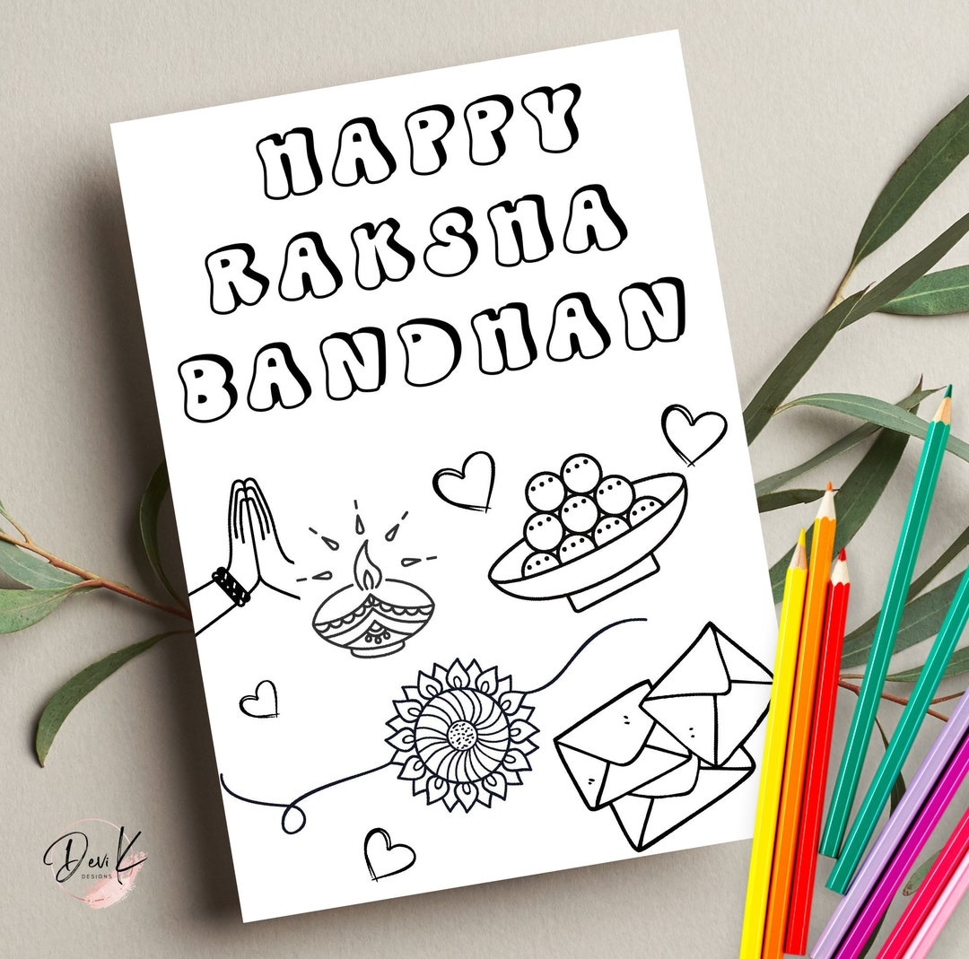 Printable Raksha Bandhan Coloring Card Kids Rakhi Card Rakhi Party