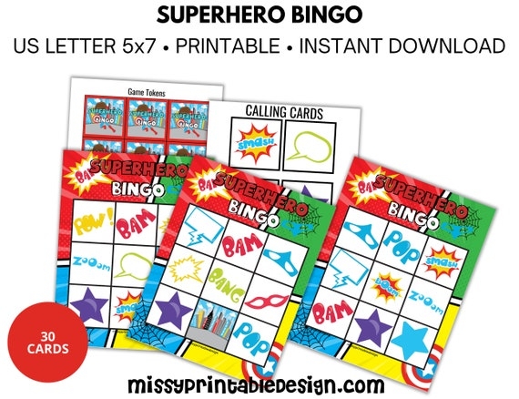 Superhero Bingo 30 Superhero Bingo Cards Superhero Game Superhero